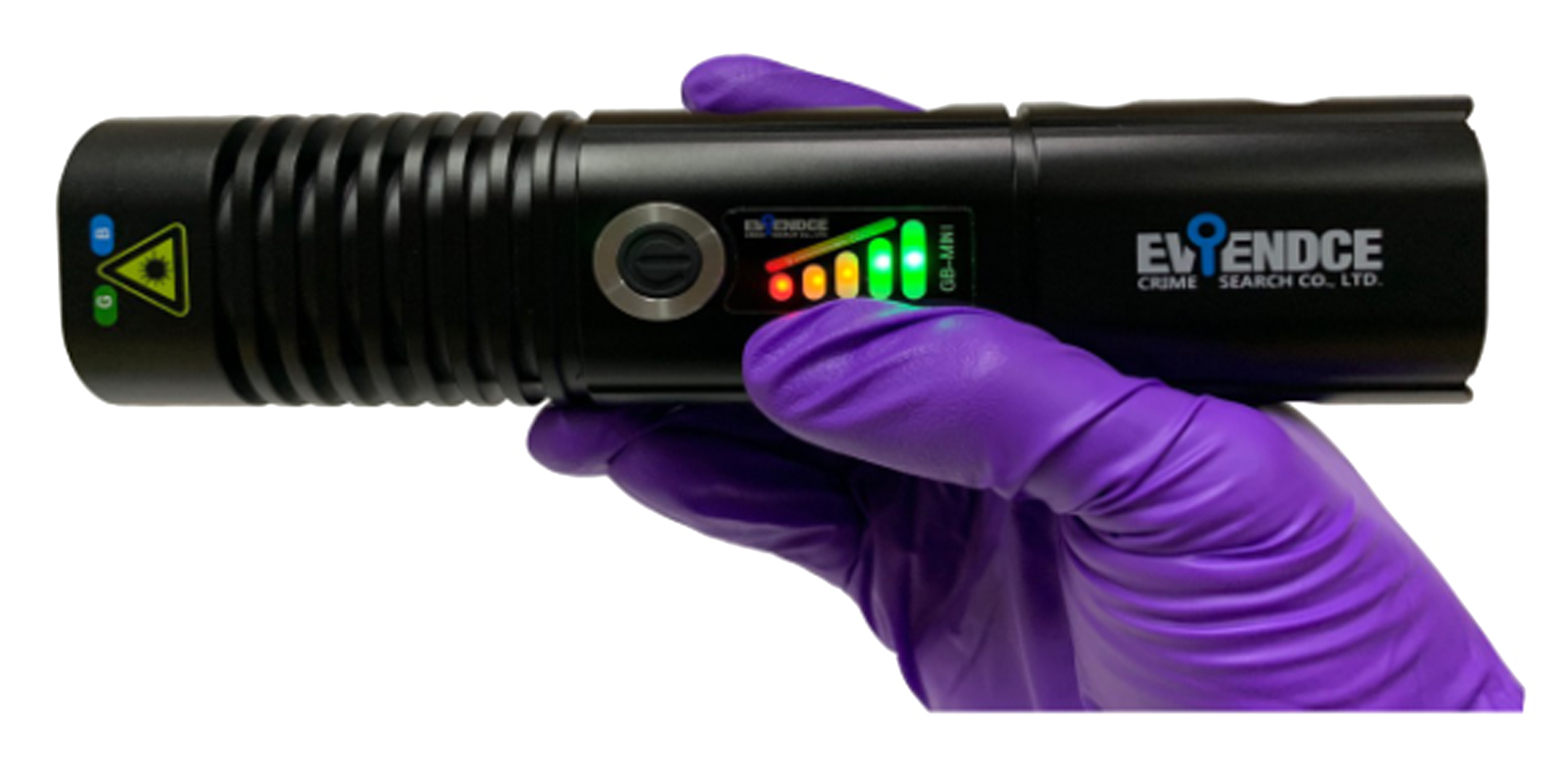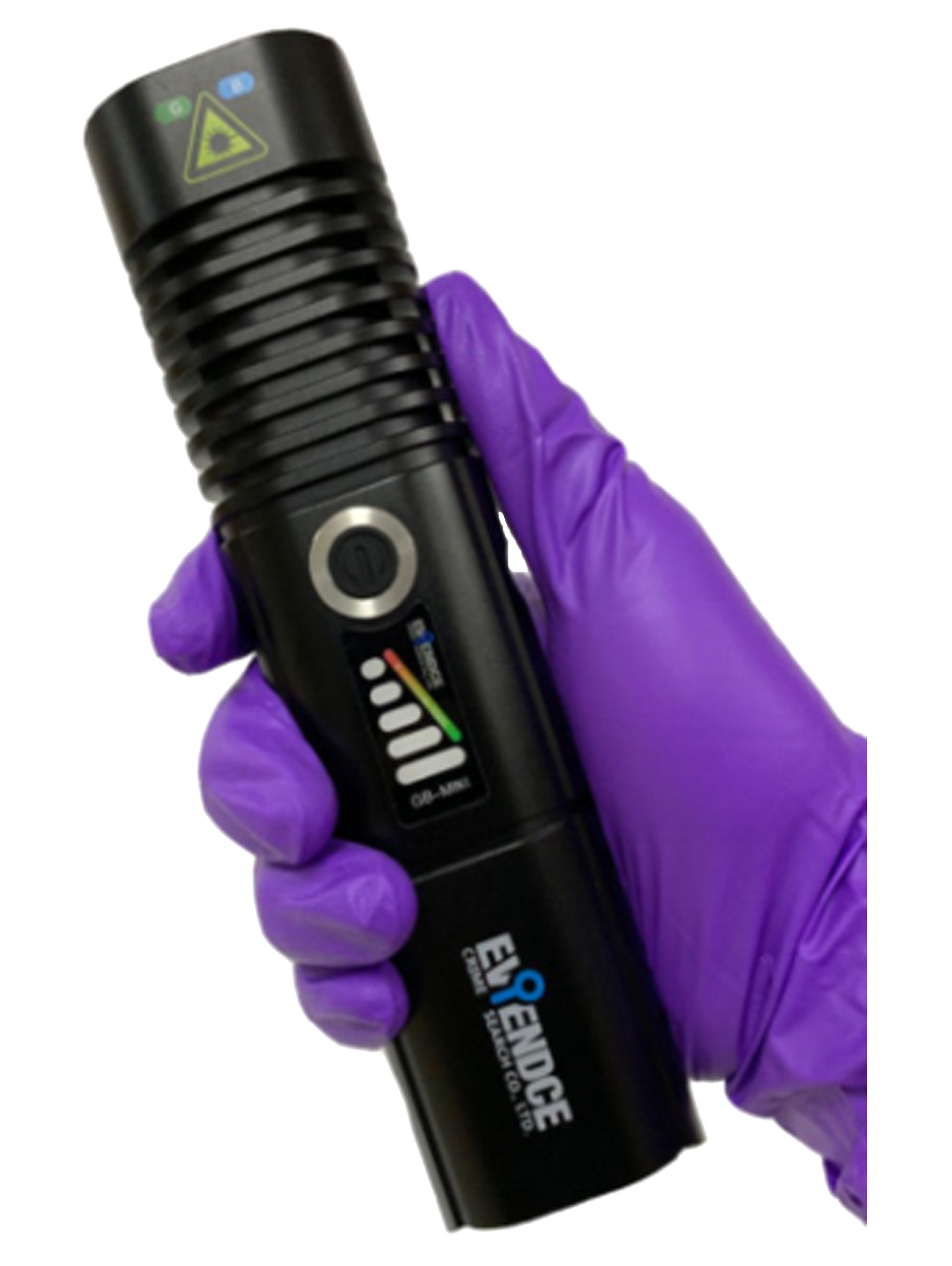 蓝光(445nm):体液(精液、唾液、尿液等)、骨碎片、枪击残留物和物证痕迹(玻璃、纤维、毛发等) 绿光(532nm):检材(用茚地酮、DFO等处理)